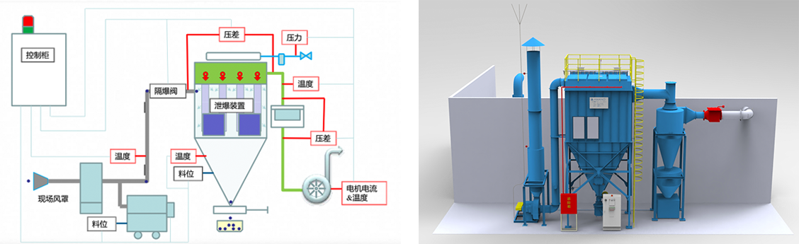 所谓爆炸对策措施,是指在发生粉尘爆炸时,除尘器通过本身的安全装置及控制机能努力使爆炸的危害有效的控制在最小的范围内,尽量避免对周边的人或设施产生次生灾害。
