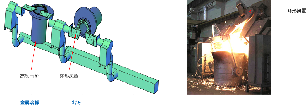 1.吸收金属投料及熔解过程中产生的烟气及灰尘