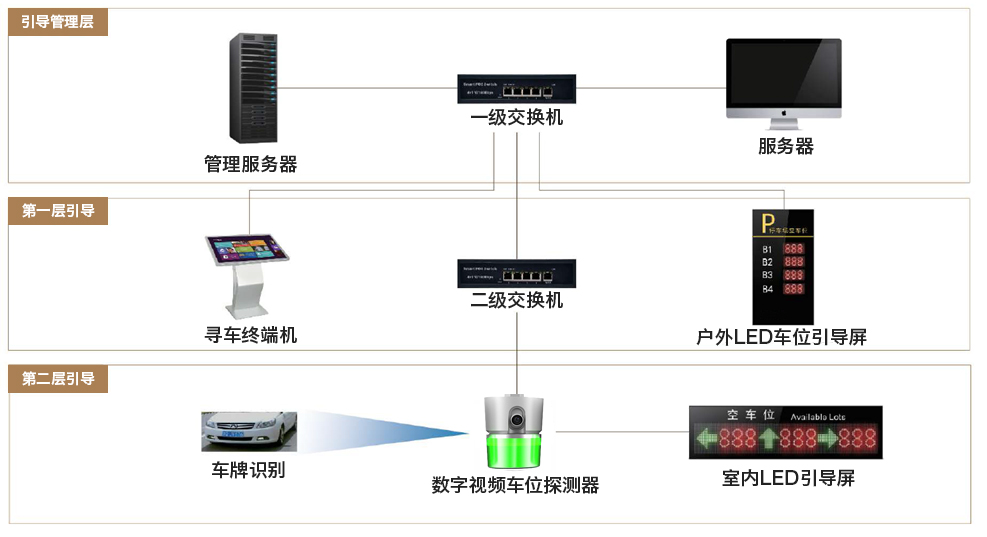 系统由四部分组成,即数据采集、数据处理、停车引导显示、寻车路径指示