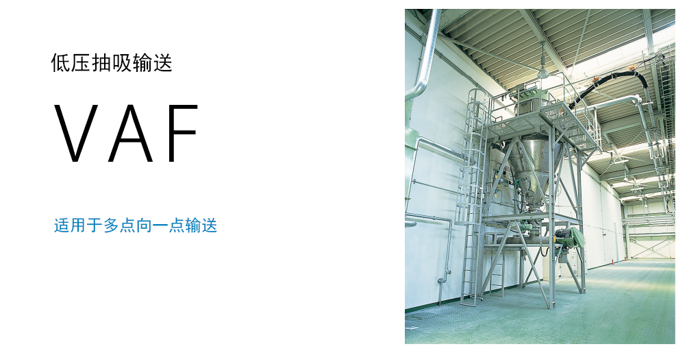 主要适用粉体 橡胶颗粒,铸造砂,灰尘 边抽吸边利用运输用气流的动态压力使运输粉悬浮运输。运输风速20-30m/s。 因为设备构成简单,可以控制导入费用。 适合向一个点集中输送。 适用于粉提供给源在较深或窄小处的情况。 抽吸输送有冷却和干燥的效果。