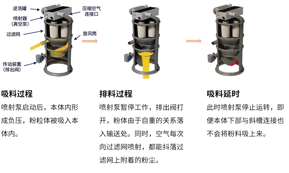 ・通过多段式喷射文丘里系统来实现该上料方式。
