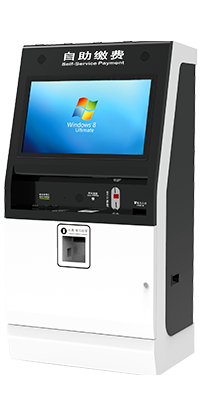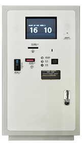 出库前自动结算停车费的机器。可选择多种付款方式。