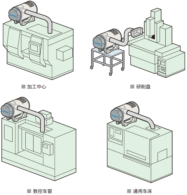 与加工机床联动,加工停止后打开机床门时达到100%运转效率,以防止油污飞散。而固定材料以及加工中运转效率则控制为65%-100%,合理调整风量,减少不必要的能耗。设备搭载8档风量切换功能,操作者可根据需要任意调整。