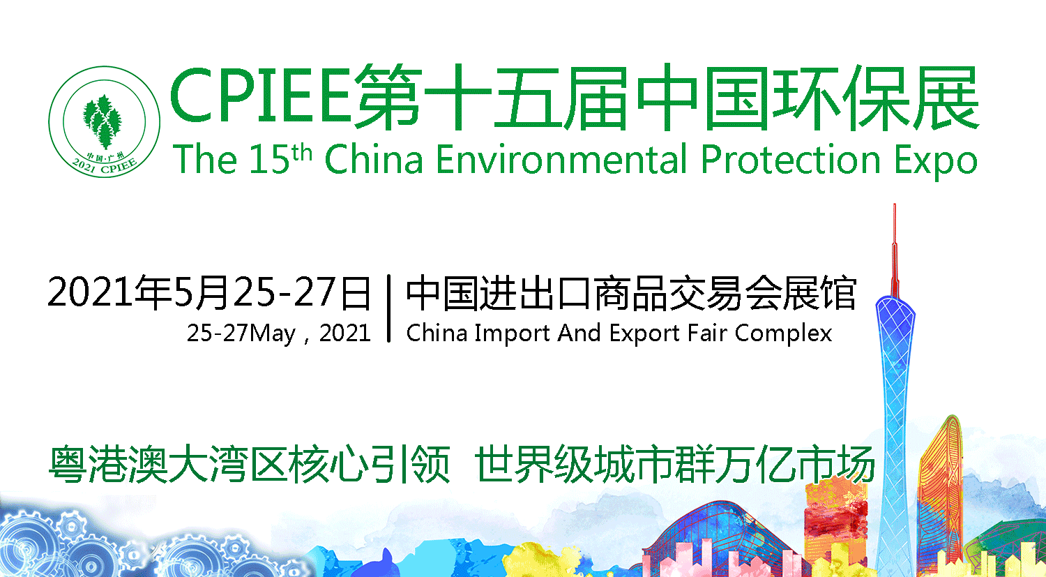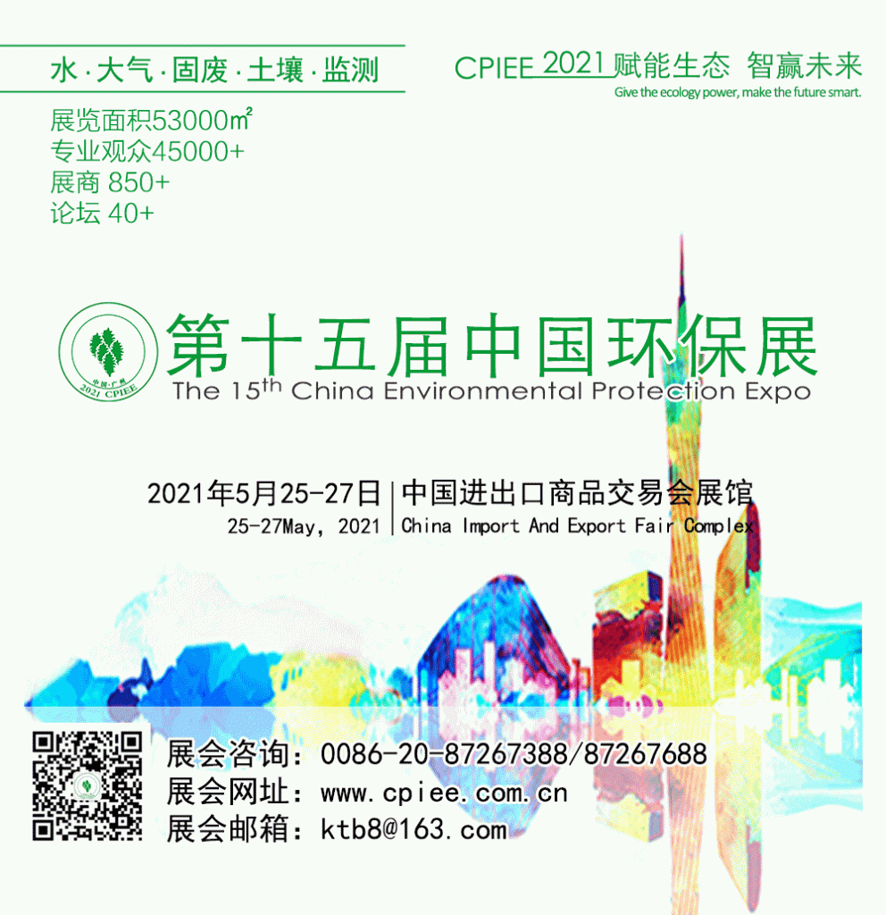 CPIEE第十五届中国环保展将于2021年5月25-27日在广州・中国进出口商品交易会展馆盛大召开!展览面积53000㎡,参展企业850+,论坛40+,水、大气、固废、修复等生态环境领域全产业链展示,全面解读国家最新环境政策与应用领域最佳解决方案。