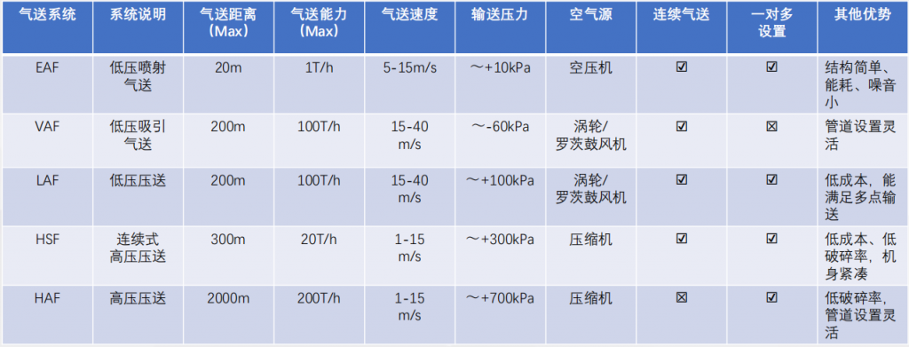 利用压缩空气的静压,使粉体形成团状并进行脉动输送的系统。适合长距离大批量输送,速度低,能保证粉体输送中部产生破碎。