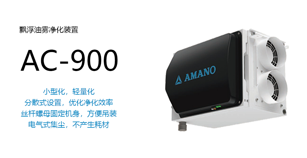 优势1 丝杠螺母固定机身,可放心地进行吊装作业,可配合各种机器的布局进行设置,维护保养方便快捷。 优势2 通过模拟实验发现,同一空间内分别使用大型机和小型机来吸油雾,小型机的总风量即便比大型机低25%,也能实现同等的空气洁净度。这证明了分散的小型机比集中的大型机更能促进空气的混合。AC-900正是通过小型分散式的设置,使排出的洁净空气与空间内的其他气体持续混合,改善气流沉淀,优化空气洁净度。