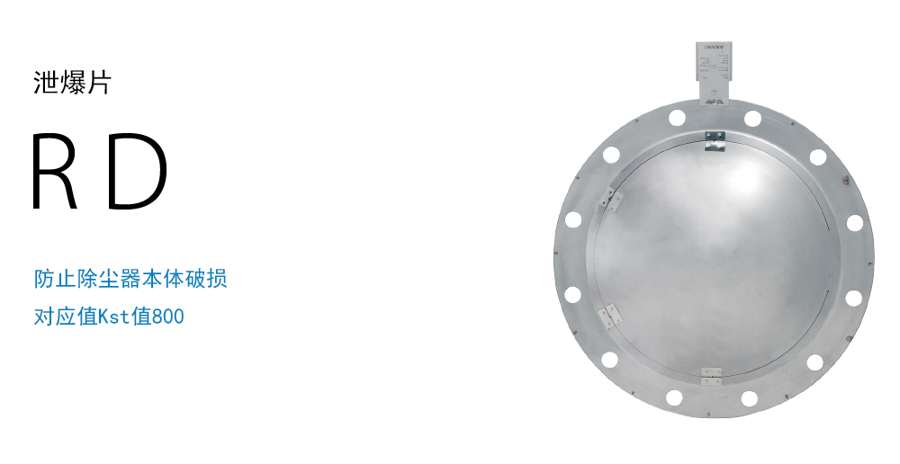 装置内部发生粉尘爆炸时,泄爆片破裂并将压力释放,为防止除尘器本体破裂及 能够将周围的受损控制在最小限度。泄爆片在设置好的压力阈值破裂,释放压力和火焰。