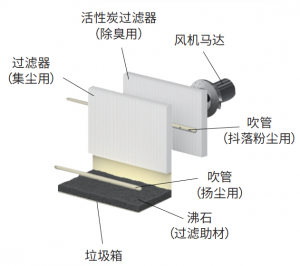 搭载活性炭箱,内置除臭剂自动循环装置,强力去除烟雾、粉尘及有害臭气。