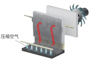 压缩空气反吹使垃圾箱内沸石扬起,沸石被吸附在滤材表面形成保护层。有粘性的烟尘与沸石结合,被有效过滤的同时,粉尘被轻松地从滤材表面剥离。有效延长过滤器的使用寿命。